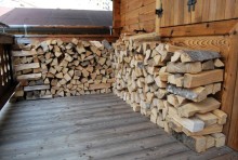 Op het balkon ligt een voorraad hout voor de open haard (meer open haard hout in het tuinhuis)