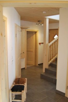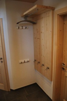 In de hal is een gardereobe met veel haken voor alle (ski)jassen